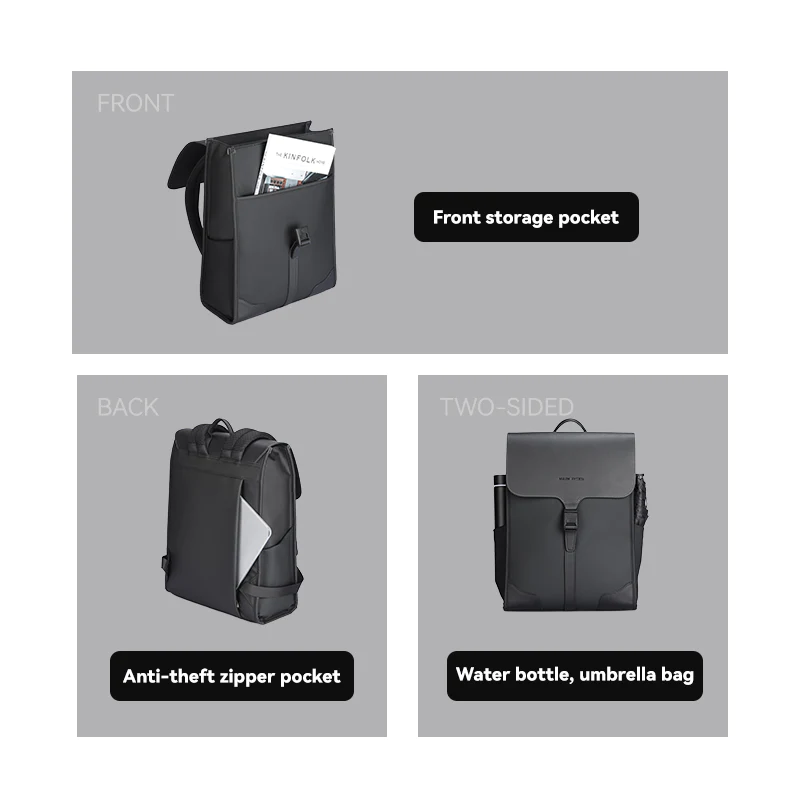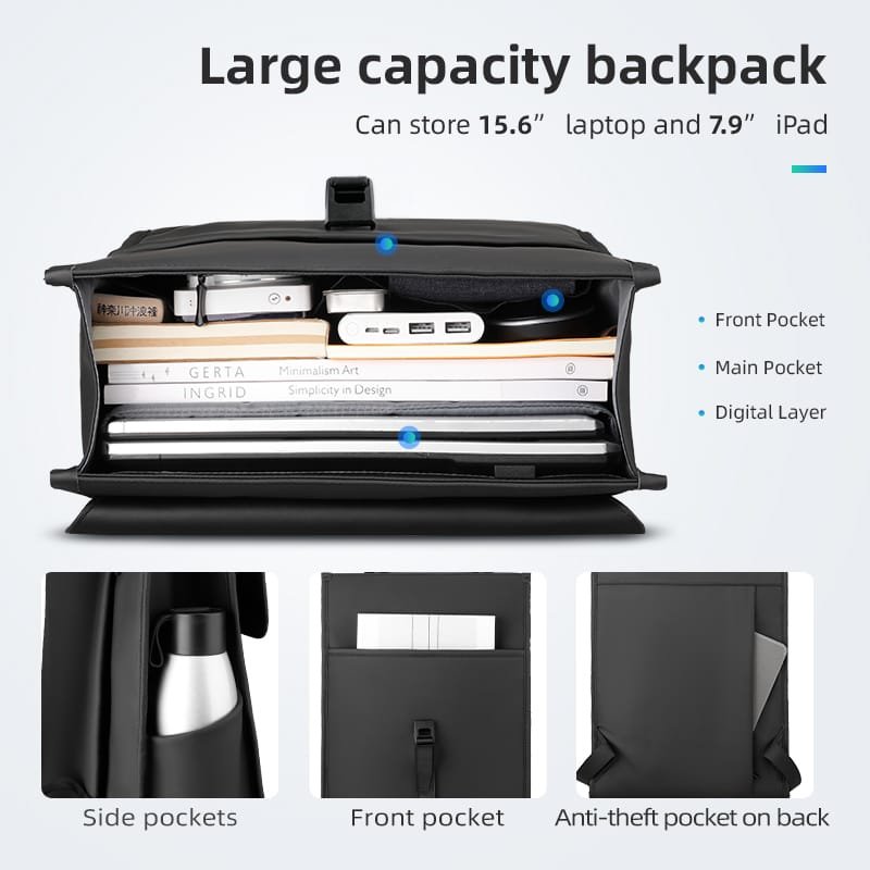 The Mark Ryden Model 1611 Backpack is a stylish and functional choice for those who need a reliable companion for both daily commutes and travel. Made from a premium blend of leather and Oxford fabric, this backpack combines durability with a sleek appearance. The lightweight design, weighing just 0.8 kg, ensures that it won’t weigh you down, whether you’re heading to work or exploring new destinations.With a spacious interior measuring 40 x 30 x 12 cm, this backpack offers ample storage space, including a dedicated laptop compartment that can hold a 15.6″ laptop and a 7.9″ iPad. The backpack’s high-capacity design is further enhanced by additional storage options such as side pockets, a front pocket, and an anti-theft pocket on the back for extra security.The water-repellent fabric ensures that your belongings stay dry, even in rainy conditions, while the scratch-resistant material keeps the bag looking pristine. The magnetic snap closure allows for quick and easy access to the main compartment, adding to the bag’s convenience. The breathable straps provide comfort during long periods of wear, making the Mark Ryden Model 1611 Backpack an ideal choice for those who value both style and functionality in their everyday carry.