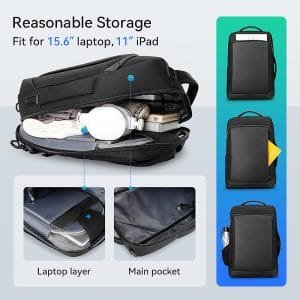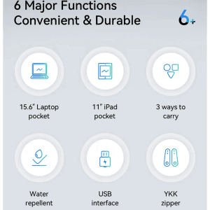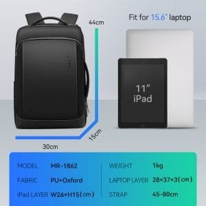 Weighing just 1 kg and measuring 44x30x15 cm, it is designed to fit a 15.6″ laptop and an 11″ iPad with ease. The spacious main pocket and dedicated laptop layer provide ample storage for all your essentials, ensuring that your belongings are organized and easily accessible.
