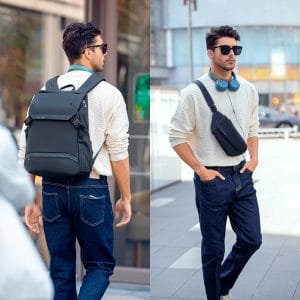 The Mark Ryden Model 2859 Backpack & Crossbody Bag is a versatile, dual-purpose accessory that seamlessly blends style with functionality. Crafted from durable, water-repellent Oxford fabric, this combo pack offers reliable protection against spills and rain, ensuring your belongings stay dry in any weather. The backpack measures 41 x 30 x 14 cm, providing a spacious 18L capacity with a professional storage system, including a dedicated layer for a 15.6-inch laptop. The crossbody bag, sized at 12 x 24 x 5 cm, is perfect for carrying smaller essentials during short trips or business meetings.