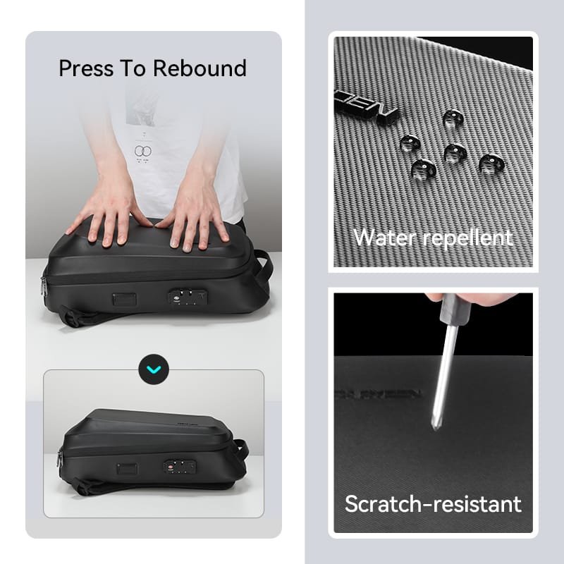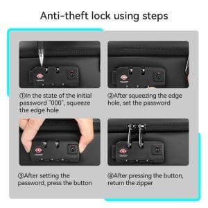 For organization, the backpack offers an organ velcro system and a gift wallet. The upgraded USB 3.0 charging port allows for convenient charging on the go (requires a mobile power supply). Additionally, the backpack’s design features a geometric shape with a focus on simplicity and functionality, complemented by a back trolley strap for hands-free travel. YKK zippers ensure smooth and reliable operation, making this backpack an ideal blend of security, practicality, and style.