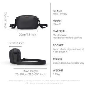 The Mark Ryden Model 403 Crossbody Bag merges style and practicality into a compact and functional design. Made from high-density Oxford Spinning fabric, this bag is splash-proof and resistant to rainwater, making it a reliable choice for various weather conditions.