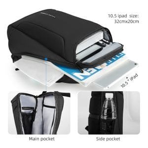 Designed with multi-layered compartments, it accommodates a 12″ iPad and provides organized storage with a back anti-theft pocket and a top pocket for easy access to frequently used items. The power on-the-go feature allows you to charge your mobile phone while on the move, ensuring you stay connected.