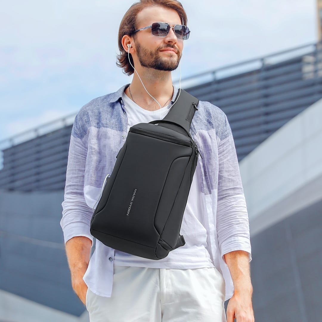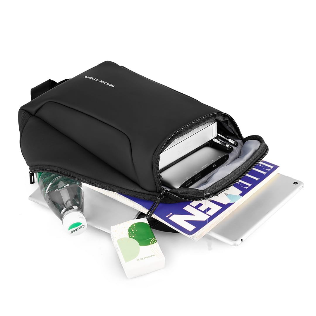 The Mark Ryden Model 7069 Crossbody Bag offers a sleek and practical solution for carrying your essentials with style and security. Constructed from durable Oxford fabric, this lightweight bag weighs only 0.6 kg and measures 38 x 23 x 14 cm, making it compact yet spacious.