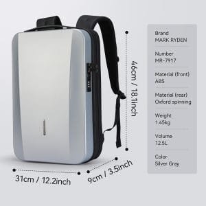 The Mark Ryden Model 7917 Anti-Theft Backpack combines cutting-edge design with practical features for modern travelers. Constructed with an ABS front and Oxford spinning rear, this backpack measures 45 x 31 x 9 cm and weighs 1.45 kg, offering a sturdy yet sleek solution for carrying your essentials.