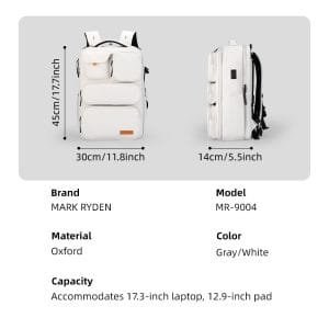 The Mark Ryden Model 9004 Backpack is designed for those who require both style and functionality in their daily commute or travel. Made from durable Oxford fabric, this backpack measures 45 x 31 x 14 cm and weighs 1.4 kg, making it a robust yet manageable choice for carrying your essentials.