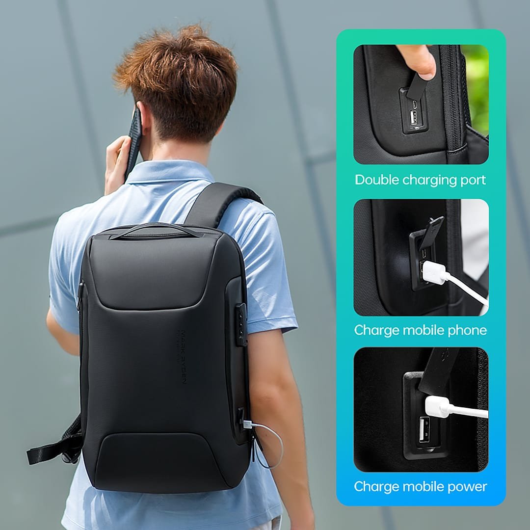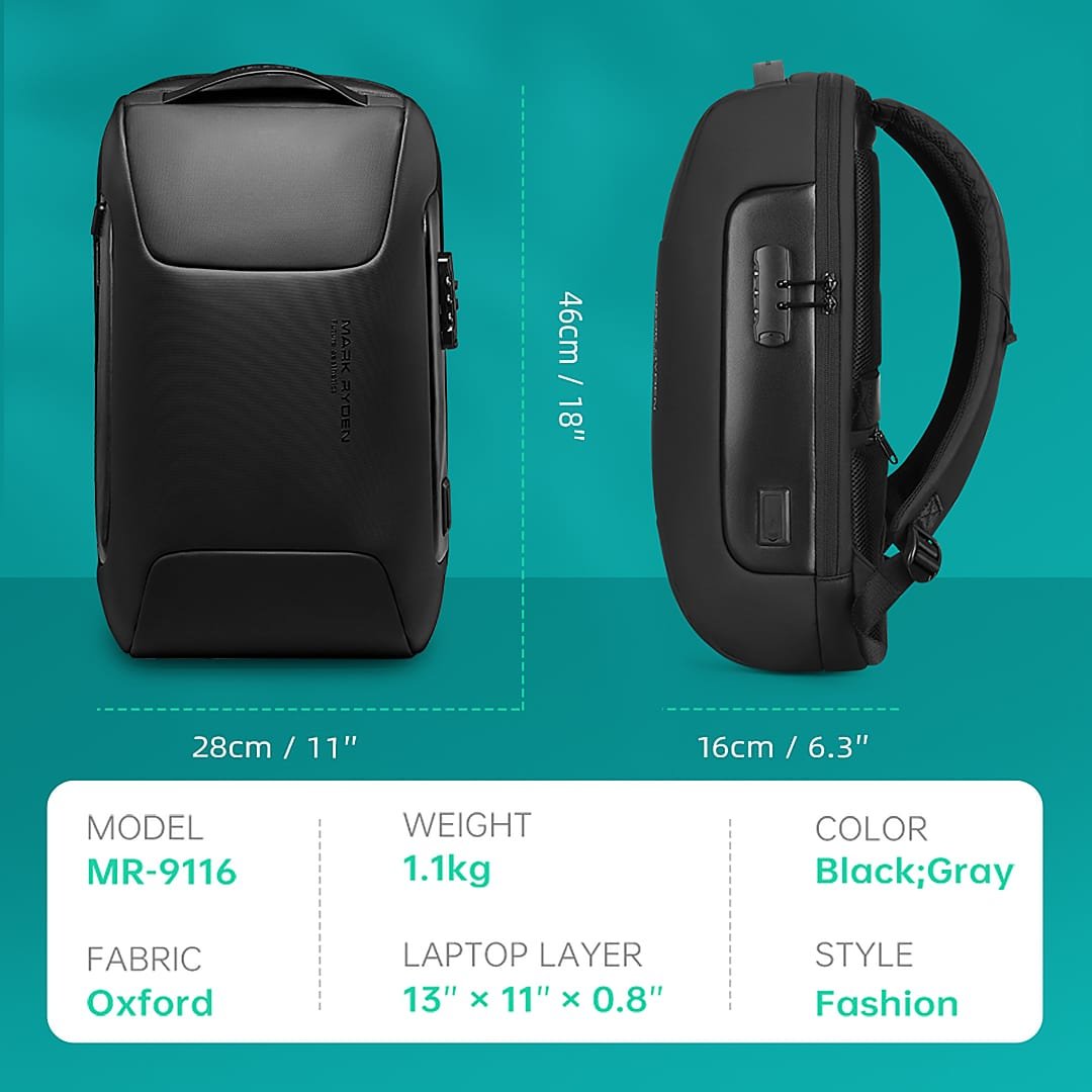 The Mark Ryden 9116 Backpack is the ultimate choice for modern travelers and professionals who value security, convenience, and style. Weighing just 1.1 kg and measuring 46x28x16 cm, this backpack is crafted from premium Oxford waterproof fabric, ensuring your belongings stay protected from the elements.