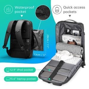 Inside, the 9116 offers a 15.6″ laptop pocket and a 12.9″ iPad pocket, along with multiple quick access pockets for your essentials like cards, phones, and documents. Whether you’re commuting, traveling, or simply navigating daily life, the Mark Ryden 9116 Backpack combines security, convenience, and durability in a sleek, modern design.
