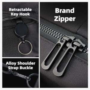 | Other Features | Alloy buckle hardware, Retractable Key Ring, Storable shoulder straps |