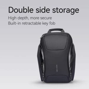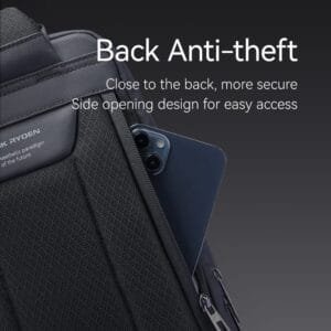 headphones, dual high-depth side pockets (one with a retractable key fob), and a hidden anti-theft pocket at the back with side access for extra security.