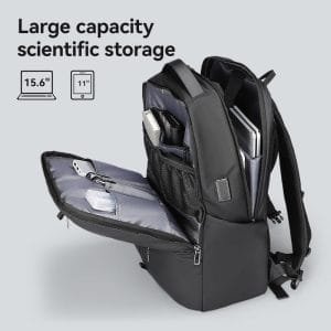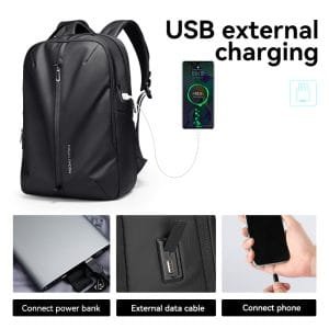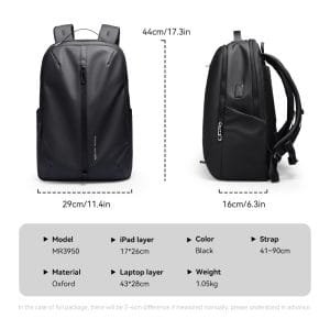 The Mark Ryden Model 3950 Backpack combines style and functionality, making it ideal for urban exploration and daily use. Crafted from Oxford fabric, this backpack is both durable and lightweight at 1.05 kg. With dimensions of 44 x 29 x 16 cm, it offers generous storage space.Designed with a range of pockets, including a main compartment, top pocket, and specialized areas for a 15.6-inch laptop, 11-inch iPad, and other essentials, it ensures everything you need is organized. The anti-theft back pocket adds security for valuables, while the water-repellent material protects against the elements.Additional features include an external USB port for convenient phone charging (requires a mobile power supply) and a fixed luggage strap that allows attachment to a trolley case. A retractable key ring provides easy access to your keys, and breathable shoulder straps enhance comfort by reducing back pressure and improving airflow. YKK zippers ensure smooth operation and durability.